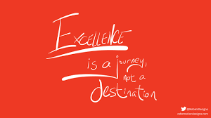 There are many ideas about what excellence is, but it's pretty clear what it's NOT. Excellence is NOT a destination. It's about getting better, developing, growing, improving, and giving it your all every day. Think about the phrases typically associated with excellence: